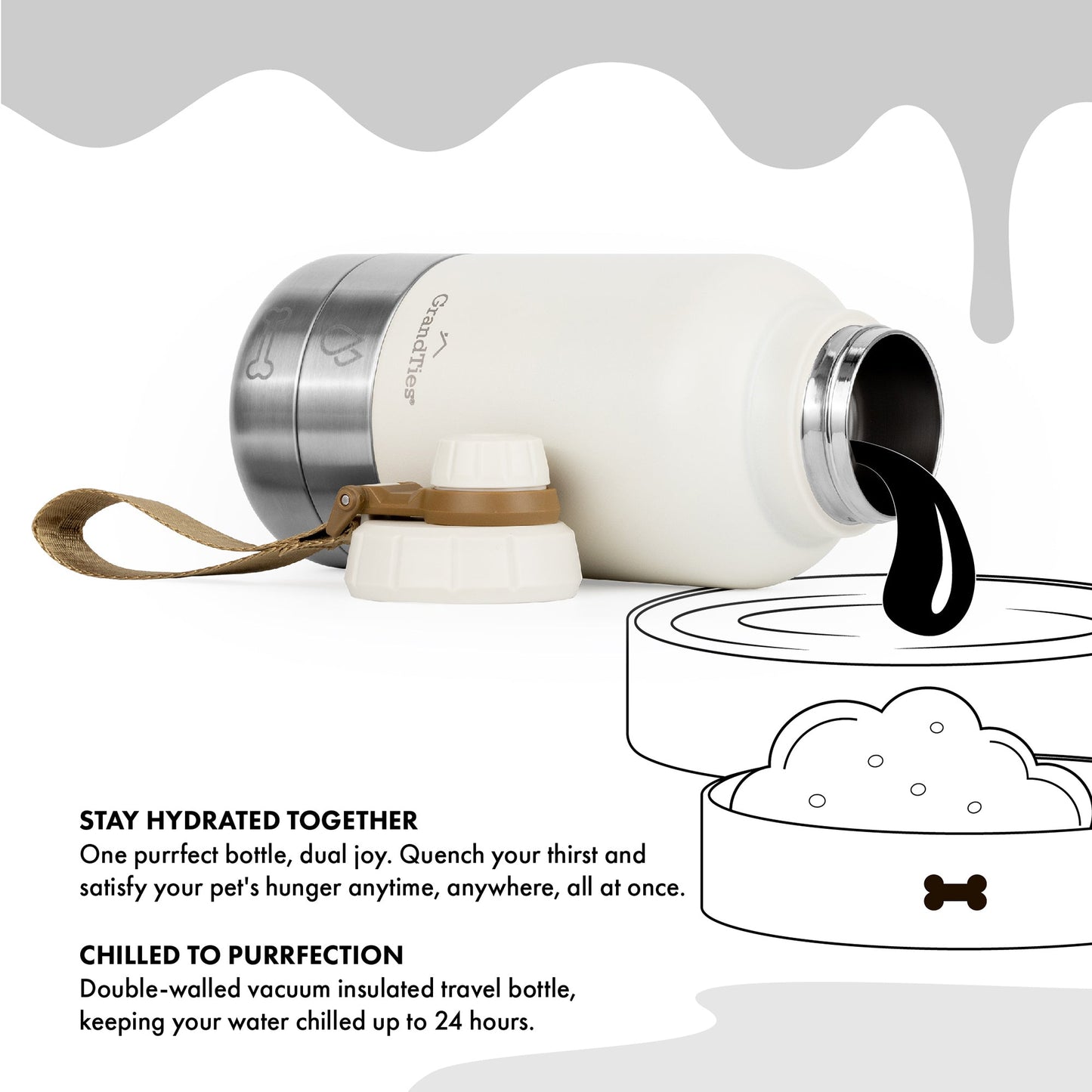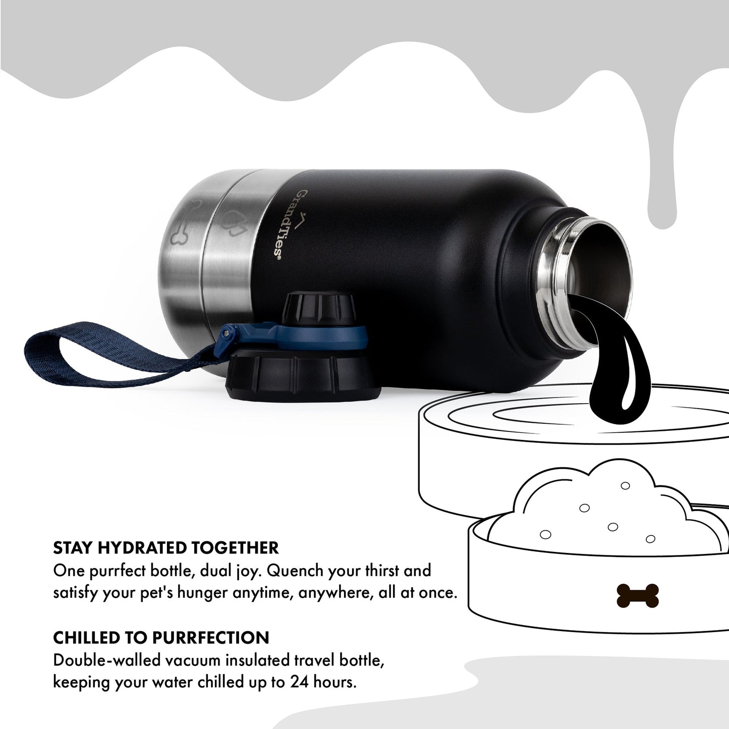 - All-Weather Hydration: This portable dog water bottle keeps water cold for 24 hrs and warm for 12 hrs. A must for dog travel and camping, ensuring your furry friend stays hydrated and happy.