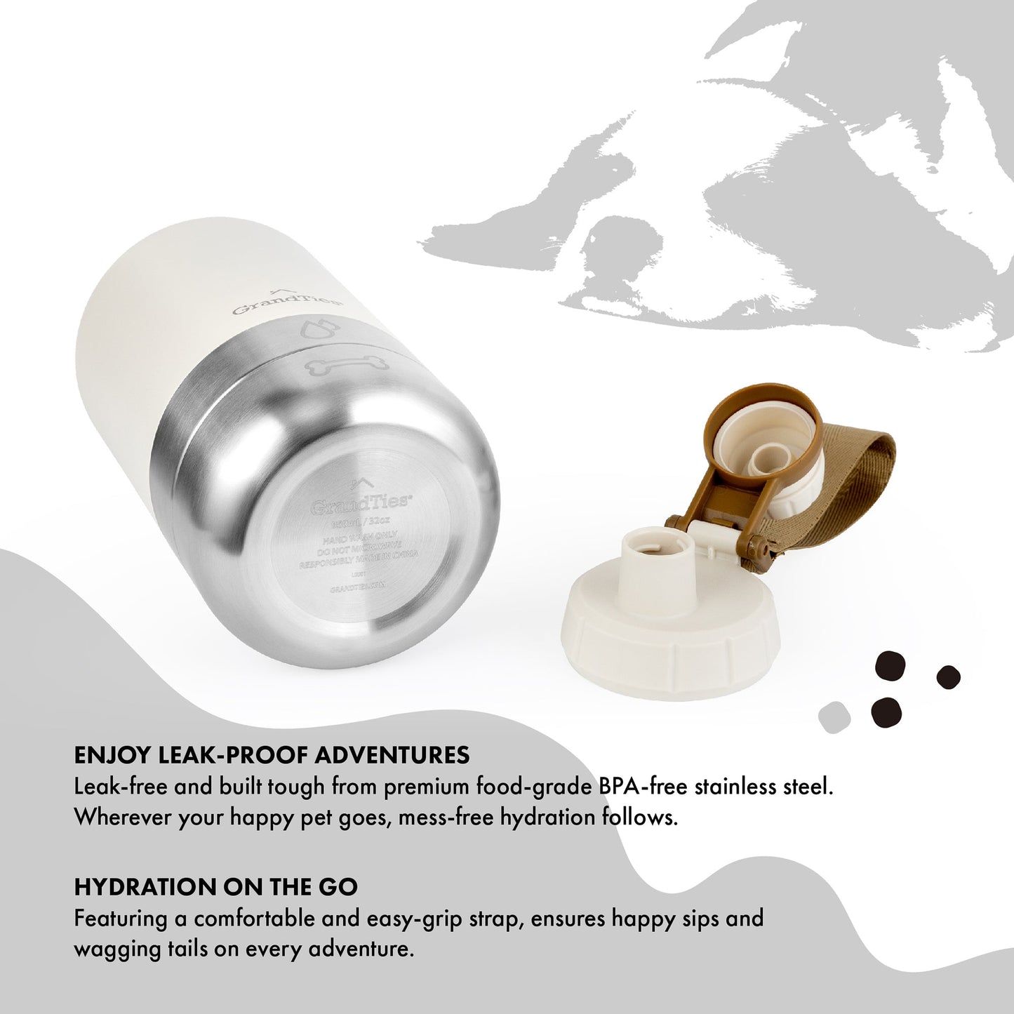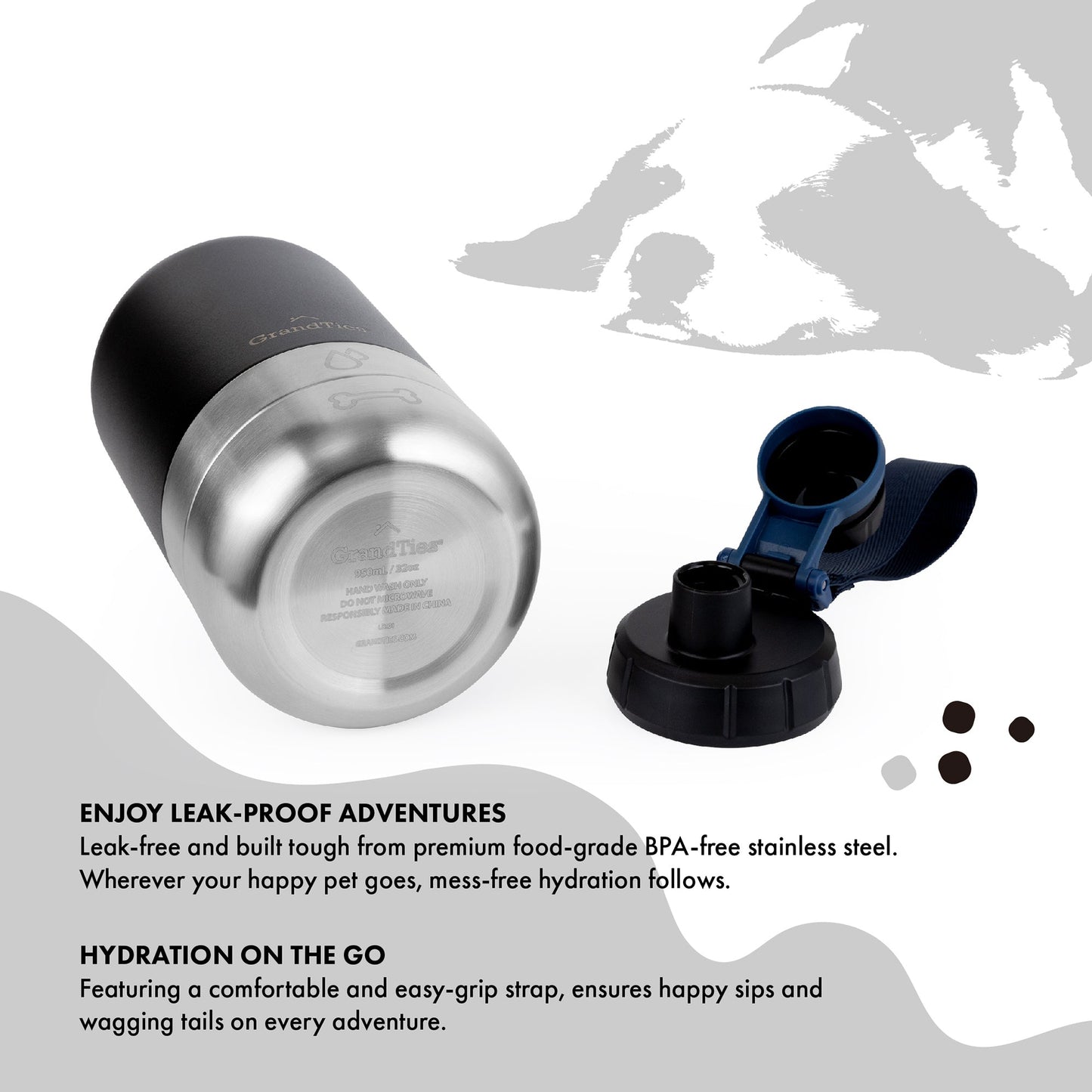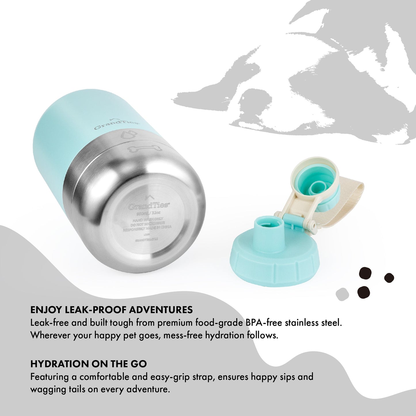 - Premium Quality, No Leaks: Crafted from BPA-free stainless steel for your pet's safety. Say goodbye to messy spills with the leak-proof design, keeping your gear dry.