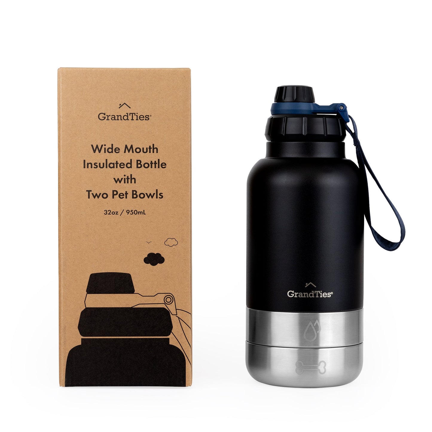 Insulated Dog Water Bottle with Bowls, Two Detachable Bowls for Dogs and Pets, Stainless Steel | 32oz/950ml