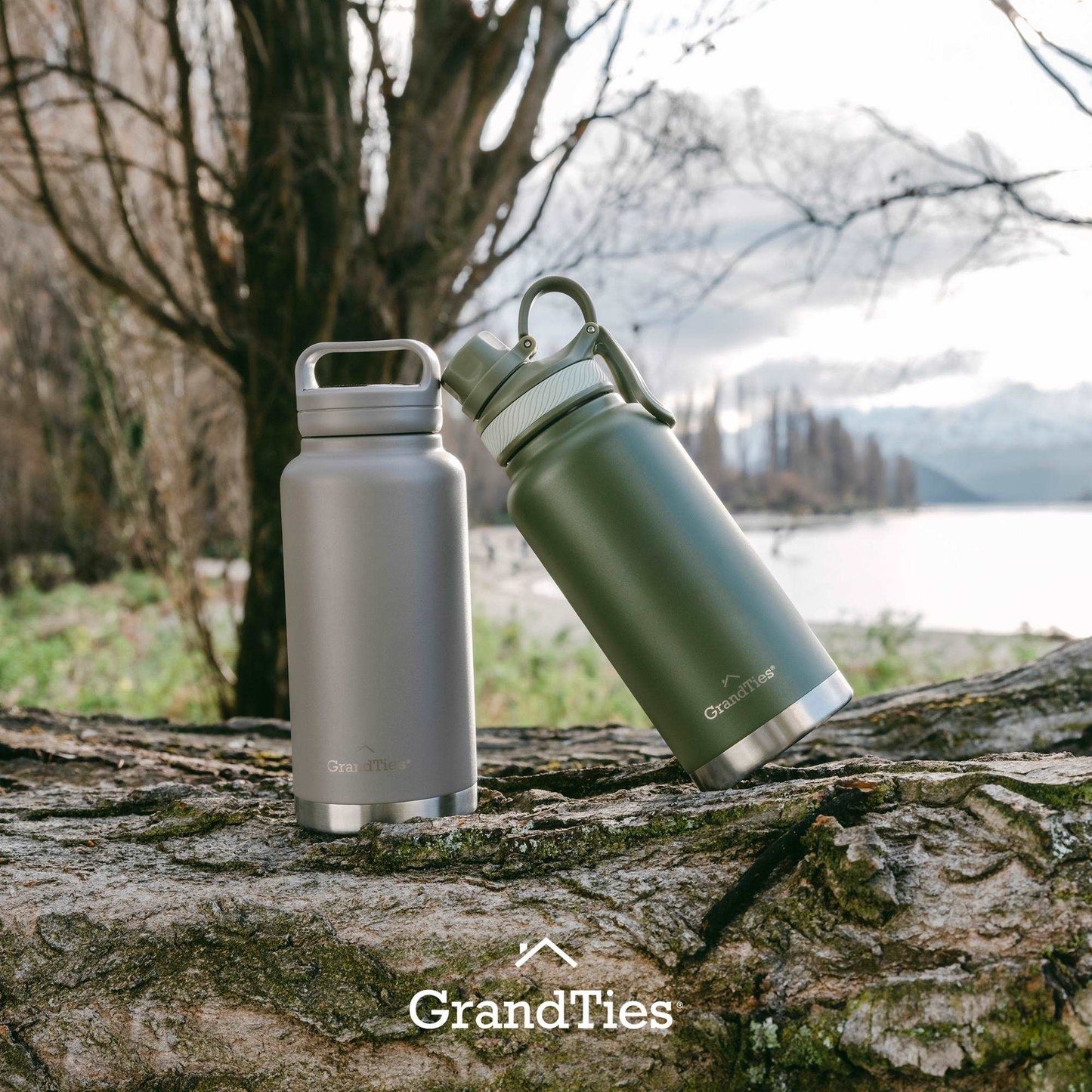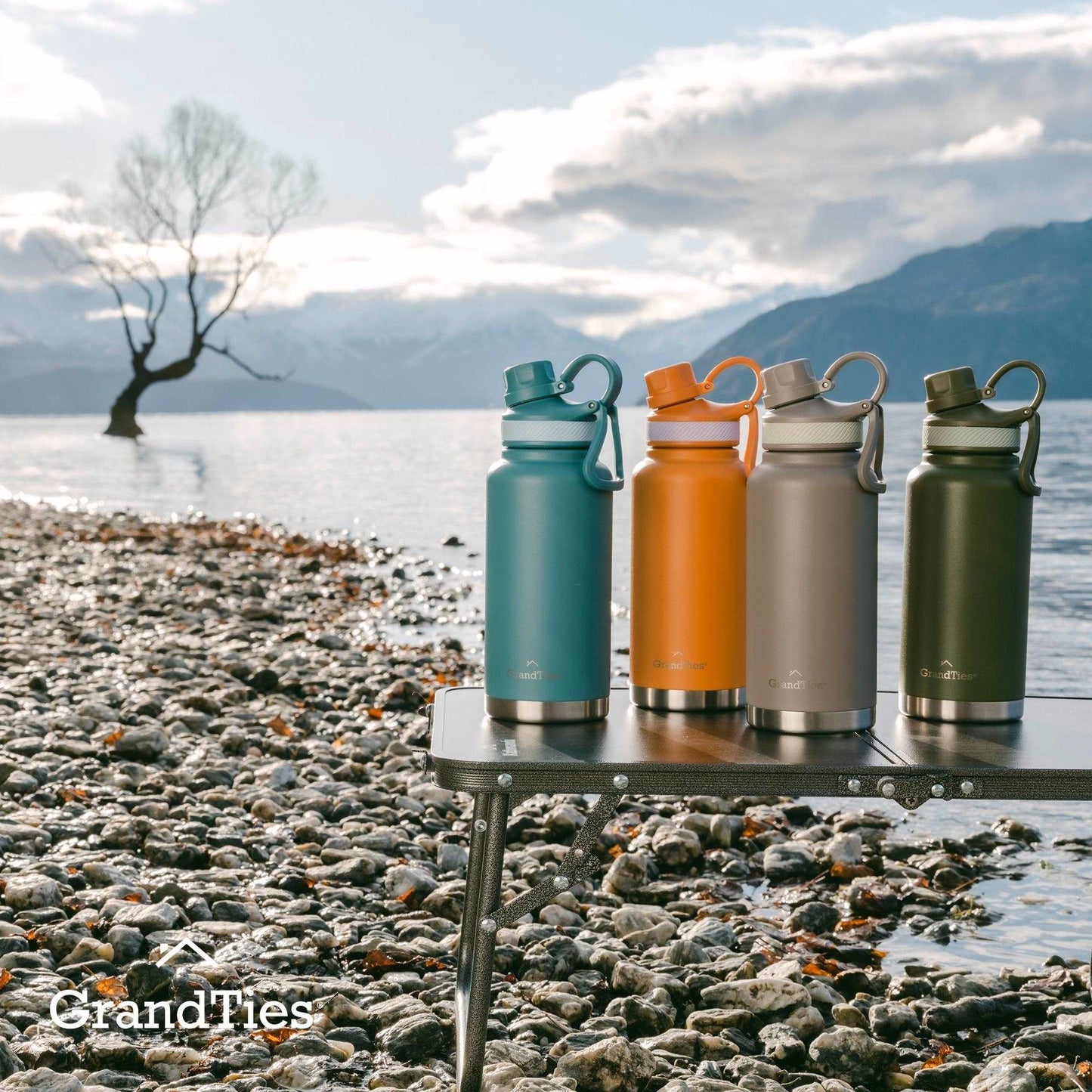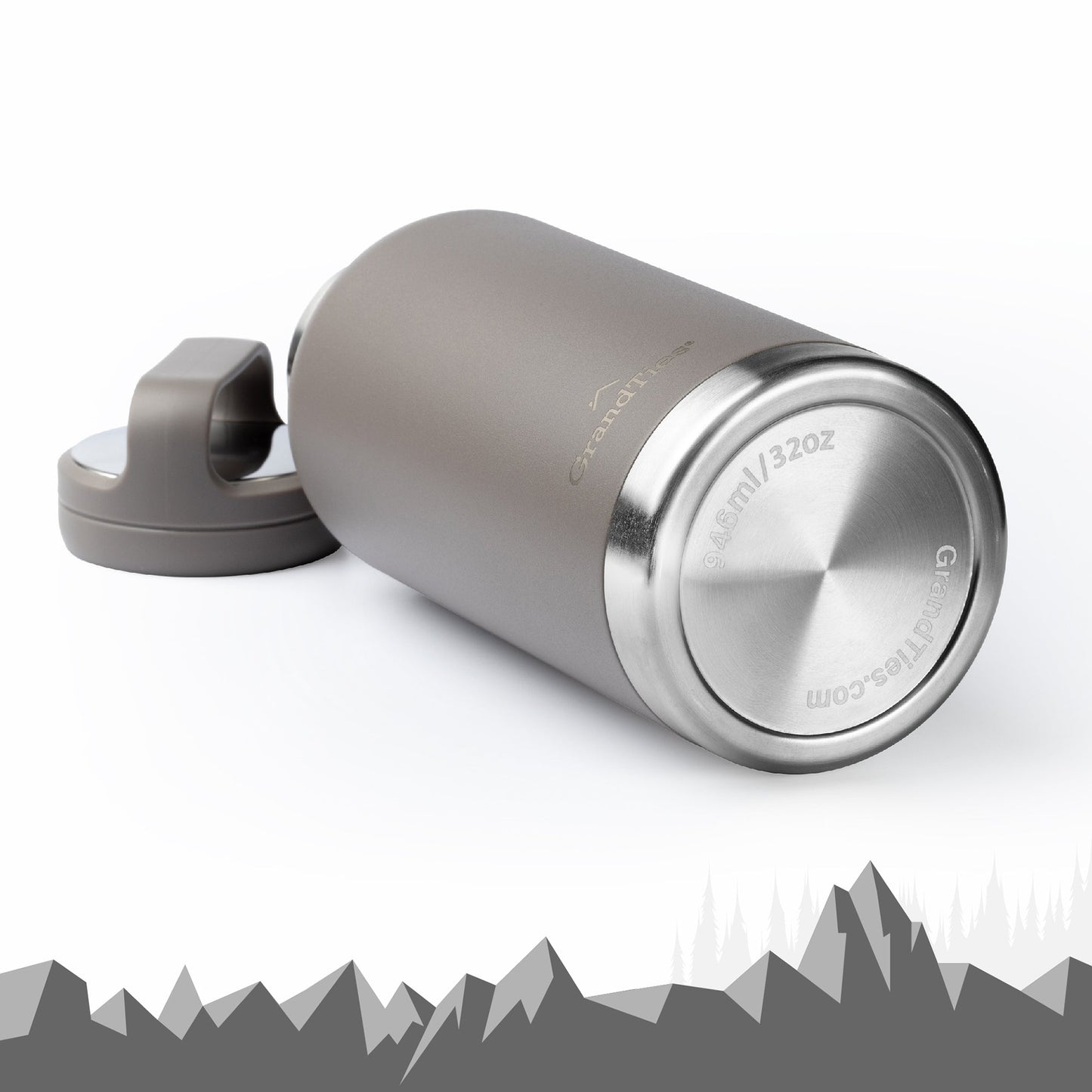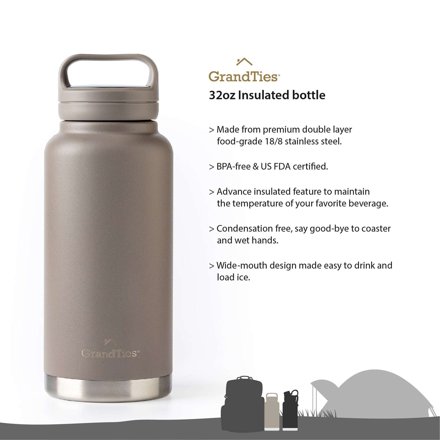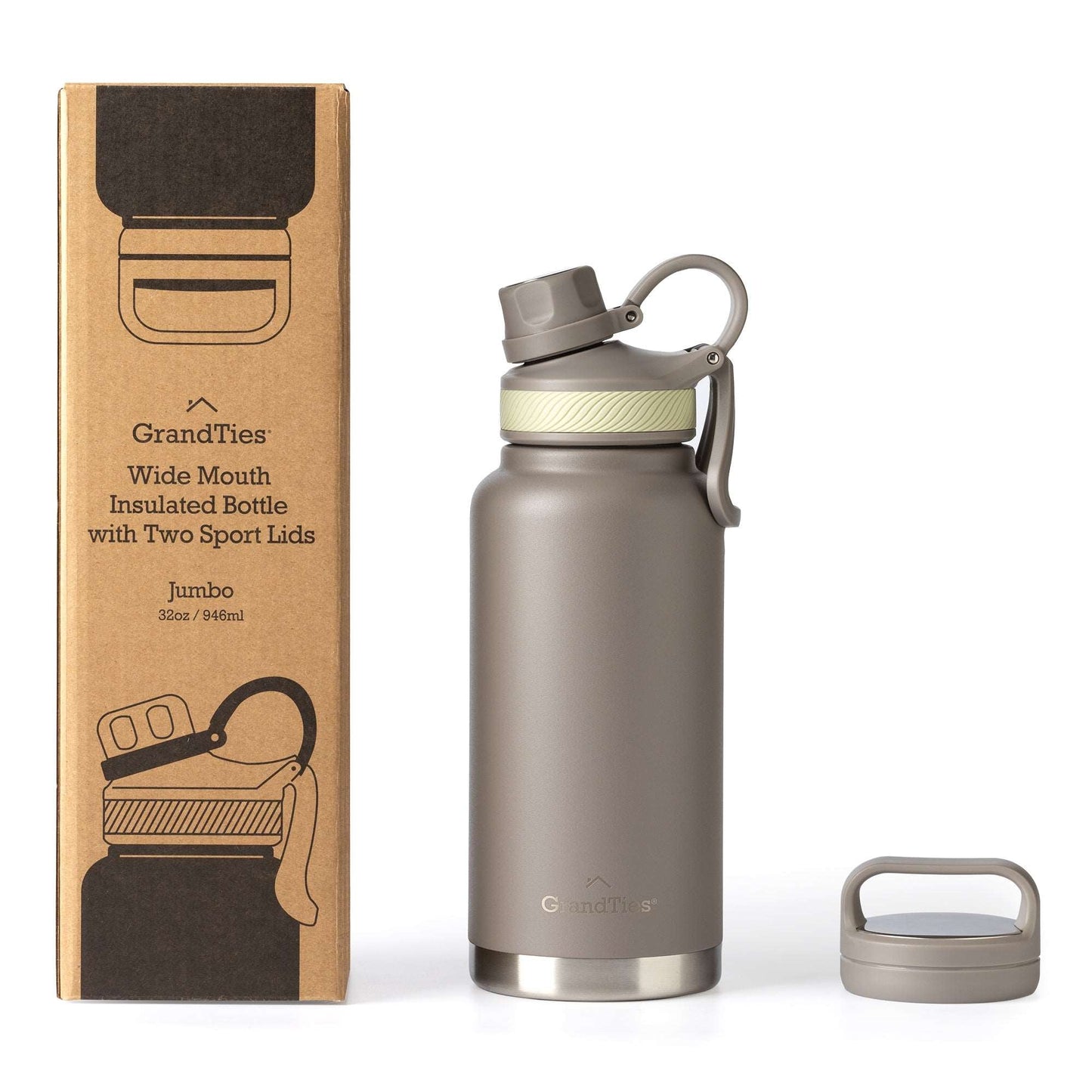 Insulated Travel Water Bottle with Two Handle Lids | 32oz/946ml - Caffè Latte