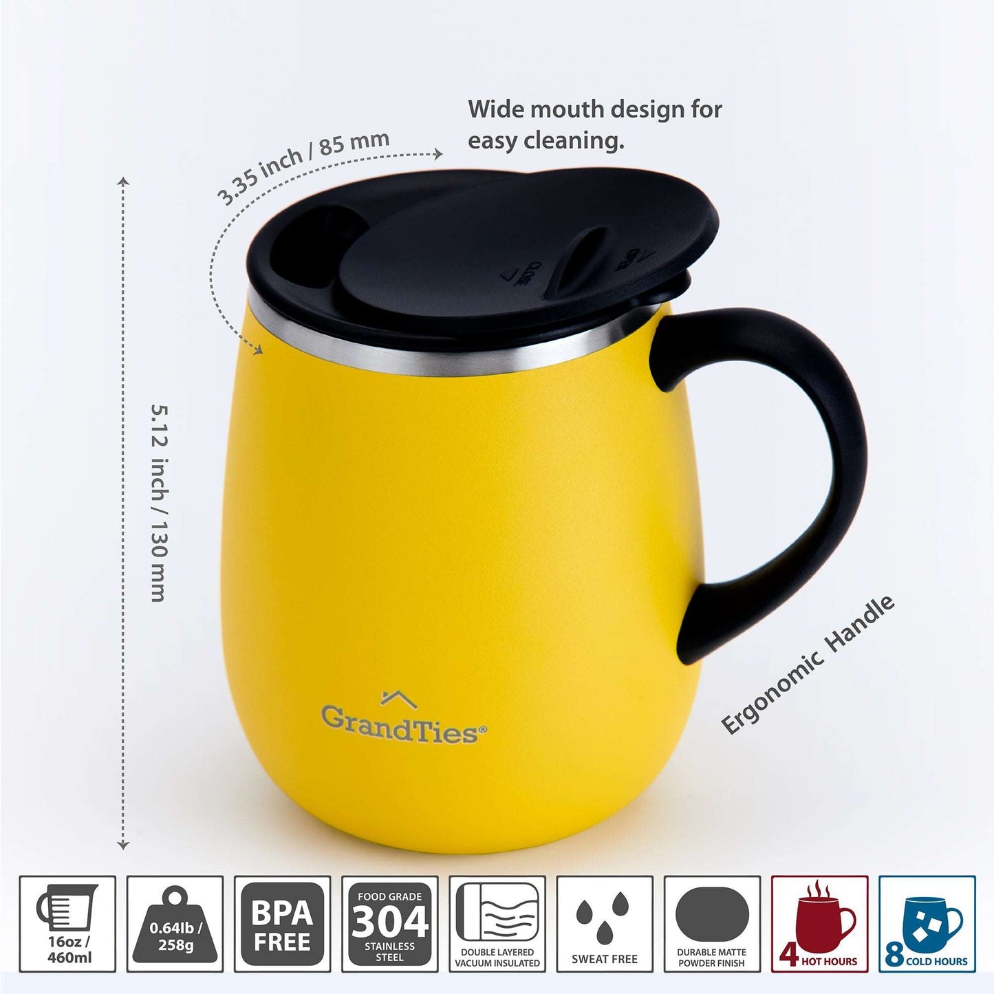 Insulated Coffee Mug with Sliding Lid | 16oz/460ml (Grande) - Lemon